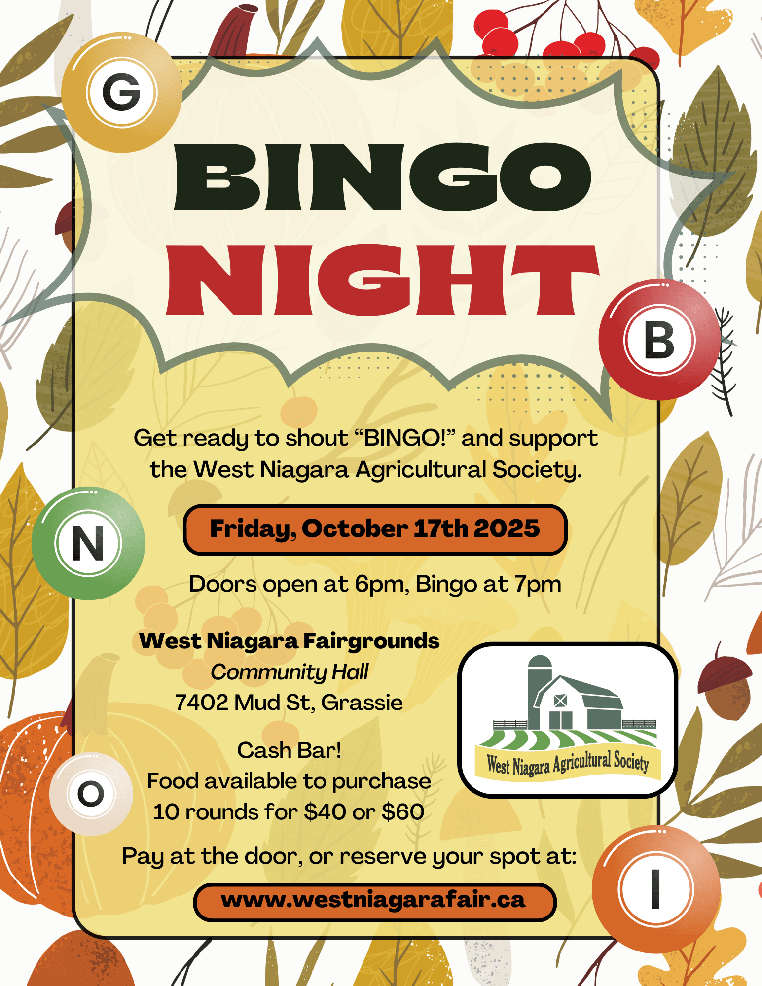 Cash or debit at the door, or e-mail admin@westniagarafair.ca to e-transfer in advance.
