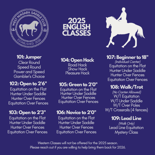 Mark your calendars for an unforgettable season at West Niagara Saddle Club. Our shows will take place on the following Sundays: